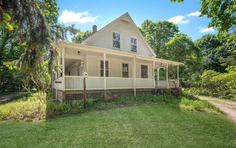 A rare opportunity on the South Shore. Welcome home to this remarkable 19th century farmhouse, a private retreat in idyllic Hingham Center. Relax on the fabulous wrap around porch surrounded by lovely and established gardens, expansive grounds and a barn. The substantial 1+ acre level lot is perfect for outdoor activities. This charming house is full of character, featuring wide hardwood floors, gorgeous original built-ins, lots of natural light and the ambiance of a wood burning stove. The main level boasts high ceilings, large living spaces, a sunny bedroom, pantry, mudroom, laundry, and impressive storage. An additional room can be a home-office. The second floor offers 2 large bedrooms with ample closet space. The full basement is a perfect space for a wine cellar and plenty of additional storage space. This home is ideally located with walking distance to Wompatuck State Park, the Hingham Public Library, and a short drive to World's End, and the commuter boat and train to Boston!