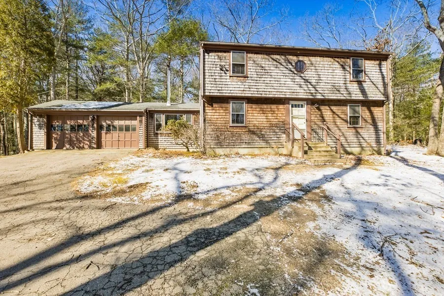 Great opportunity to own a solidly built home in a retreat setting on 2+ Acres. With a little TLC this home could be transformed. Good size kitchen with eat in area leading to the dining room. Front to back living room and a lovely private screened porch that was recently updated overlooking the back yard. The second floor offers 4 good size bedrooms & full bath. Hardwood throughout, newer roof, 2 car attached garage and full unfinished basement that has the potential to be finished. Bonus 3 car detached garage with potential useable space above. Close to Green Harbor, shops, restaurants & the beach. Walking trail to Wildlands Trust Hoyt Hall Preserve.