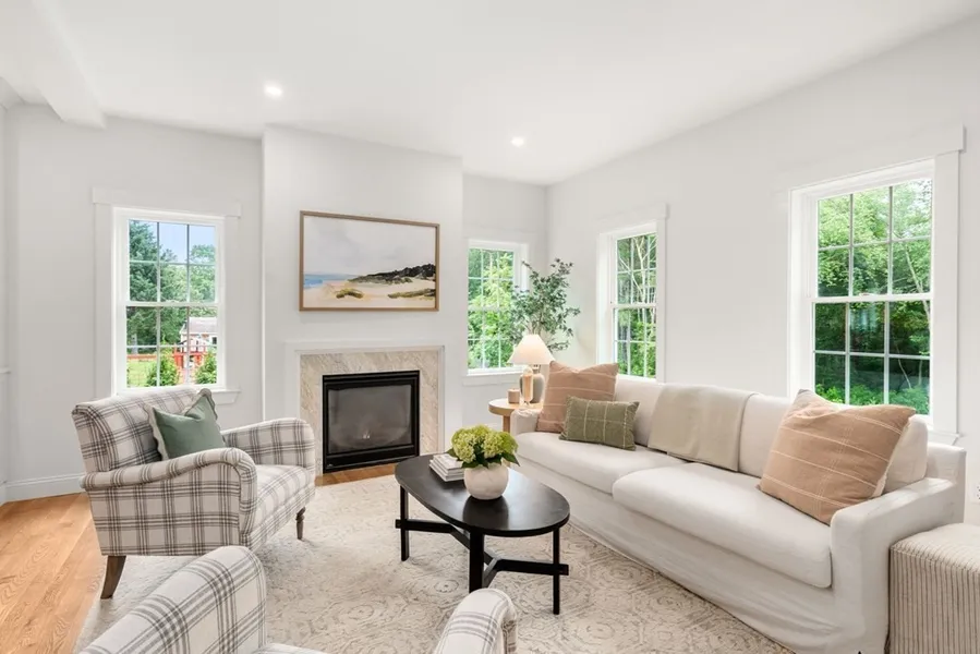 Introducing our 2nd home at our Modoc Street project by NFB design. This cape-style home features approx. 2,800sf of open living space with a total of 4 bedrooms, 3.5 bathrooms and beautiful details throughout. The custom built kitchen features stainless steel appliances, white cabinets, quartz countertops, an oversized island and ample storage which overlooks the living space with gas fireplace and marble surround, 9 foot ceilings and recessed lighting. The primary suite hosts vaulted ceilings, walk-in closet, and spa-like ensuite bathroom with double vanity, marble shower and free standing tub. This home is complete with laundry room, finished basement, an elegant home office, attached 2 car garage, an optional first floor primary suite, top of the line, custom finishes and lighting throughout; space for entertaining in the back yard and a highly desirable location next to the Duxbury ...