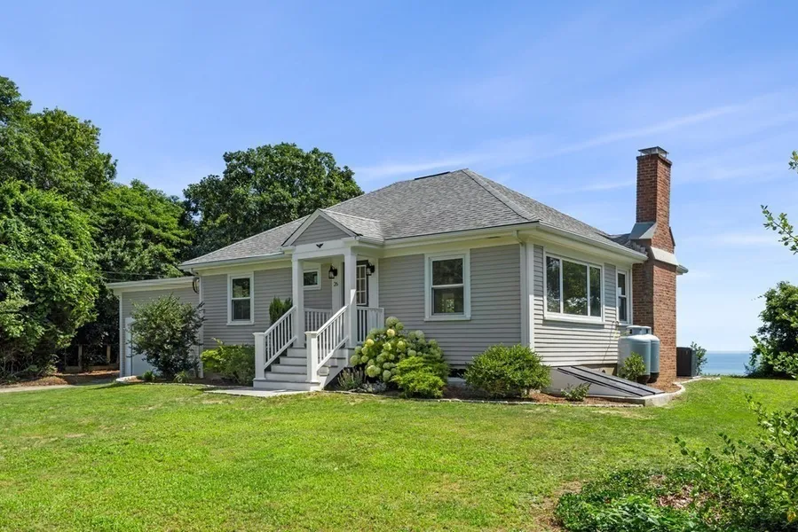 Newly remodeled waterfront craftsman-style home atop a coastal bank on 1.63+/- acre lot in Manomet's Ocean Aire Estates. First floor of this one-level home w finished lower level features an open concept kitchen-living room. The kitchen has quartz countertops, peninsula bar top, white shaker cabinets, stainless appliances & gas cooking. The sundrenched living room has a tiled fireplace, custom mantel and oversized windows overlooking Cape Cod Bay. Oak hardwood floors throughout. The front section of this home has two bedrooms & one full bathroom. Off the kitchen, find a bathroom with frameless glass shower door & third bedroom. French doors also located off the kitchen hallway lead out to a composite deck. The grounds have mature trees and shrubs offering ultimate in privacy. Tiled lower level offers endless possibilities for living room, home office, exercise room, workshop. Paved driveway and one-car attached garage. Also available w/ abutting 25,908+/- sf parcel MLS#73115559.