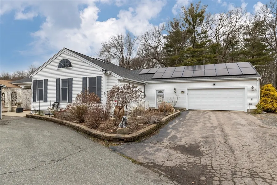Welcome to your own private retreat nestled on approximately 16 acres of serene countryside! This meticulously maintained ranch-style home, one of two on the property, offers a rare opportunity for tranquil living in a condominium setting without the typical fees. Situated amidst picturesque surroundings, this charming home boasts 3 bedrooms and 2 full baths.There is also a walk up attic for storage or future expansion. Step inside to discover hardwood floors throughout, a double sided fireplace from the kitchen into the main bedroom. The home has a well water /water filtration system, whole house generator, transferable solar to be assumed. The solar bill is $130 month and no electric bill. The only shared bill is the master insurance which is $1500. annually. Outside, the delights continue with a large detached garage providing more storage space for vehicles and equipment. The home has a sprinkler system. MBTA is 1 mile, and 30 minutes to JFK. Walk to gorgeous Whitman Park.