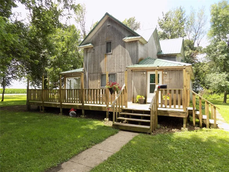 This rural residential acreage is located in a quiet, scenic area northeast of Rolfe, Iowa, near the Des Moines River. It features an extra guest house or cabin with one bedroom and one bathroom, providing additional living space. The property also includes a large steel garage or machine shed with ample storage space, perfect for various needs. Situated just 1.25 miles off a paved road, it is near a wooded area and the West Des Moines River, offering a peaceful rural living experience close to a friendly small town.
