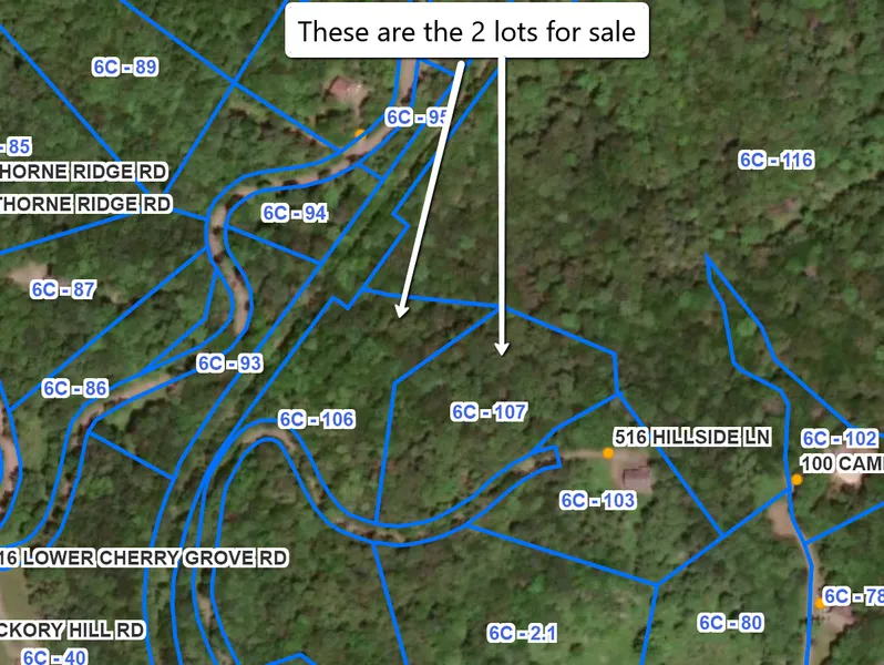 To view the property youll need to put in 516 Hillside Lane Slaty Fork West Virginia into your navigation system. This is the home next door. When you get on the street you can find the property by using a phone app called Landglide. Youll need to input in Pocahontas County and Parcel #03-6c-01070000. After you do this youll need to switch it to satellite mode to make it easier for you to find. This app will highlight the property and show a blue dot representing where you are located on the property. If you have specific questions on what can be placed on this lot, please call the building and zoning department of Pocahontas County at 304 799 6063.