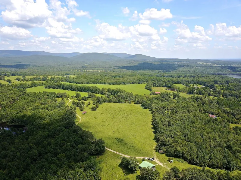 This existing cattle farm, tucked close to the base of Rich Mountain, is setup to truly be a turn key property. The farm is completely fenced, has a working corral, 4 ponds, and 2 barns already in place. Your herd will have acres of manicured clover and fescue for grazing while approximately 33 acres are currently in hay production during the summer. The tract currently does double duty as a Fox Pen for training coyote dogs and holding dog running competitions, thanks to a 5-foot web wire fence around the property. If you are interested in focusing more on deer and turkey, creating some openings in the fence will allow you to transition easily to a hunting farm. The manicured pastures will make great areas for food plots, letting those bucks graze and turkeys strut. While the existing timber will make great bedding and cover. The property currently has a 1,200 sq. ft. metal lodge with two bedrooms, one bathroom, a full kitchen, and a loft area which will sleep several. The layout of the property offers several other areas that would make beautiful homesites, one with utilities already in place. The location of the tract, in a valley of the Ouachita Mountains, allows spectacular views of the surrounding mountains from throughout the property. The icing on the cake is the unlimited recreational opportunities within just a few minutes of the farm. Just a few hundred yards away is Lake Wilhelmina, a small public Game Commission lake with a reputation for excellent bluegill and red ear fishing. In 2011, the lake produced the state record crappie, at 5 lbs. The upper Mountain Fork River is less than 3 miles away, offering opportunities to canoe and fish. 10 miles away, you will find the charming town of Mena, Queen Wilhelmina State Park, Talimena Scenic Drive, UTV trails, and many other opportunities for adventure.