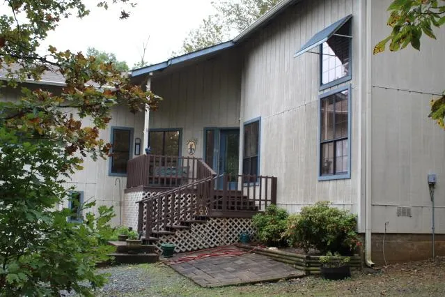 3 bedroom, 2 1/2 bath home on 2.70 acres just outside city limits. 2 small wet weather creeks, woods and extra landscaping make this home a beautiful retreat. Unique custom home with screened in porch off formal dining. Formal living room, den/family room, skylight, two car garage, central heat & air.