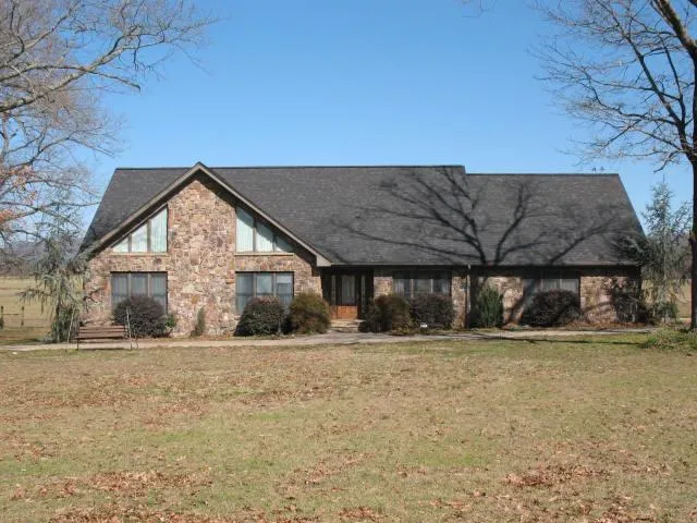 STUNNING MOUNTAIN VIEWS. Cattle or Horse Ranchers, you can take pride in this 43 acre ranch with its mountain views from this spectacular rock home. There is a great room with vaulted ceilings and gas fireplace with rock display. You will have 3 bedrooms and 3 full baths. The large master bedroom has the bath with whirlpool tub plus a shower along with 2 sinks plus a walkin closet. The kitchen is a dream with lots of cabinets and opens to both dining room and breakfast room. More land available.