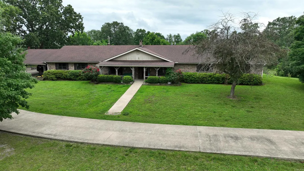 Ranch-style brick home offers 3,722 SQFT of comfortable living space, featuring 4 extra-large bedrooms & 3 full bathrooms. Set on 10 acres just outside of town- near Mena Lake. Fenced & cross-fenced—perfectly suited for livestock, gardening, or smaller scale farming. Outbuildings include 24x30 metal shop w/concrete floor & lean-to & electricity, plus 40x40 barn. 2 ponds (1 wet-weather) enhance the property’s agricultural & recreational potential. Spacious country eat-in kitchen w/abundant cabinet & counter space, double wall ovens, breakfast bar & a large adjoining sun room/playroom. Primary suite includes walk-in closets, extra storage, & access to the in-ground swimming pool. Hall bath features linen storage & a separate powder room area for added functionality. Additional highlights include a cozy indoor fireplace, backup gas heat, & storm shelter. Oversized attached two-car garage includes 3rd bathroom w/shower, space for extra refrigerators or freezers, built-in storage, plus storage room. 3-vehicle carport. In ground swimming pool and outdoor fireplace offer the perfect setting for relaxing or entertaining in the peaceful countryside. Perfect place for homesteading paradise!