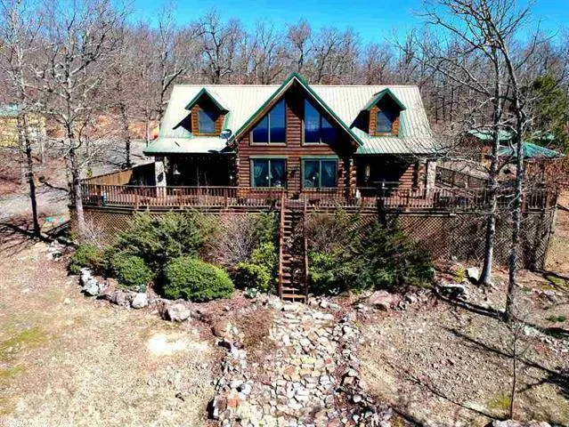 Exceptional log home on 5 acres. Gorgeous, mountain views, shop plus guest house w/kitchenette & bath. Deck all around house. Tons of landscaping and flowering trees with wooded land around. Soaring ceilings to allow natural lighting from cathedral, Anderson windows. Country kitchen w/warm cabinetry. French doors open onto the covered deck, delightful for entertaining. Home is tastefully done with open floorplan.