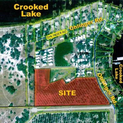 10+/- acres of lake view property located next to pristine Crooked Lake Prairie Park. This property is positioned for future development next to the City of Frostproof. Adjacent to miles of clay roads, makes this an excellent location for an equestrian center. Property has access to Crooked Lake and is located across from Bob’s Landing Marina, the only boat ramp on Crooked Lake. 470+/- feet frontage on Ohlinger Road. Land use is ARR – room for 2 homesites. 4” deep well.