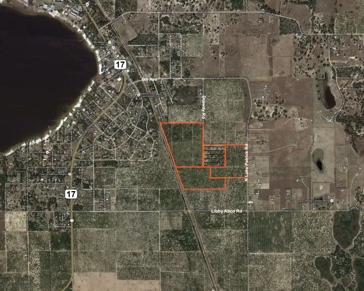 Research Parcel InformationFrom Fat Boys in Lake Wales on Hwy 27, travel east on 630, which turns into Hwy 17. Travel for 4 miles until you reach 5th Ave on your left. Turn onto 5th Ave, and travel a mile, bending south. Grove will be on your right.