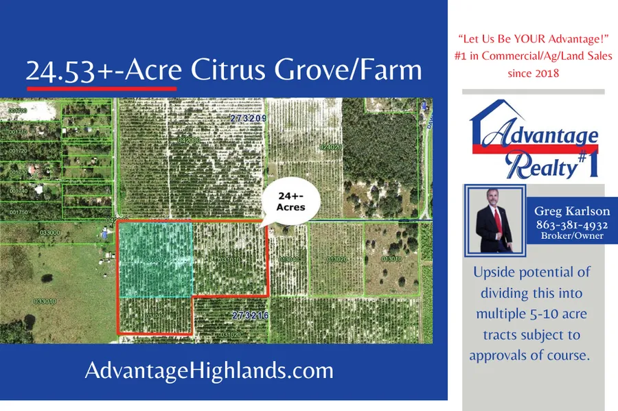 24.53+-Acre Citrus Grove/Farm Only 4+-Miles to US 27/11mi to Quiet Town Frostproof with 1270+Ft on paved scenic winding country road through other Farm/ Groves!
