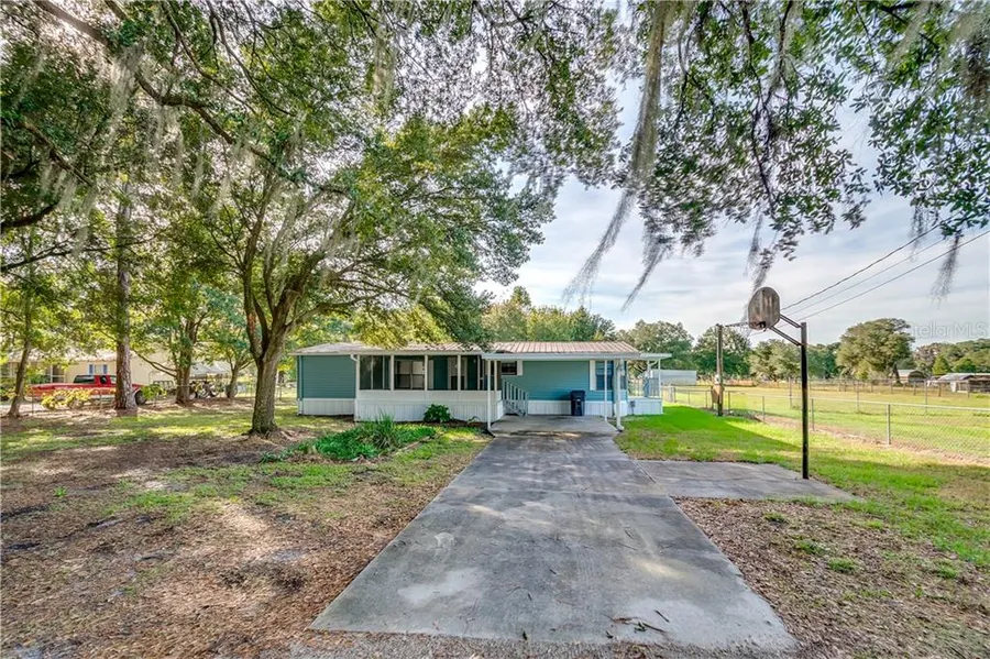 This home is situated on an oversized 1.31 acre lot with a fenced in backyard and gated front driveway. The shed in the backyard is perfect for tool storage. Walking up to the front door, is an enclosed screen lanai. The house features a split floor plan, new carpet, new paint, and a new air conditioner. The master bedroom has a walk-in closet. The kitchen features a dining area with access to the exterior, completed with covering and landing stairway. The rear elevation of the house features an open deck, perfect for sunset cookouts. Call to schedule your private showing.