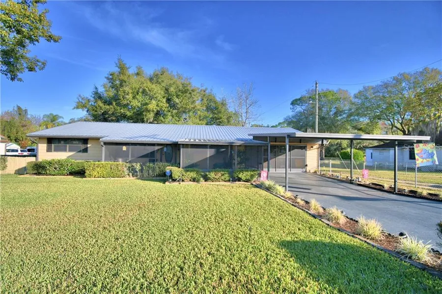 This listing includes two parcels with a main home and a rental home. The main home is a 3 bedroom 1 1/2 bath home with a split floor plan concept, situated on a sprawling acre and a half. The home is filled with beautiful vintage charm and features original hardwood flooring in the main areas of the home. The large eat in kitchen has a farmhouse style island for prepping meals, plenty of cabinets for storage, a built in desk and features an accent wall designed with reclaimed wood. The living room is spacious with beautiful knotty pine walls & ceiling and has a warm and cozy atmosphere. The master bedroom is light and airy and features a half bath. There are 2 additional bedrooms on the other side of the home with a guest bath down the hall. There is a sitting area just off of the kitchen that leads to the screened lanai. Enjoy your own private oasis when you walk out of your back door....