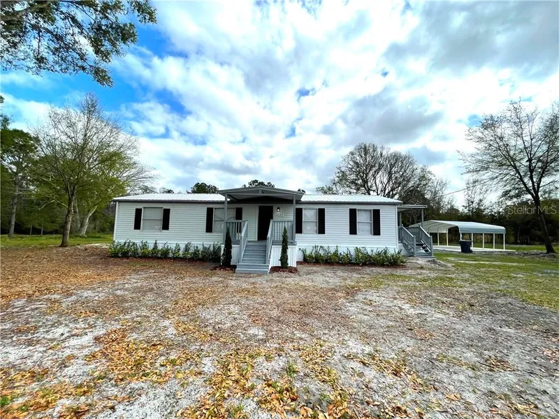 Fully Renovated Modern 3 bedrooms, 2 baths home. This property has an open floor plan and split bedroom layout. The home features brand new interior paint and Vinyl Plank flooring throughout the home. A 8 Acre Compound with mature landscaping. This property has an large 2 car carport with concrete driveway. Schedule your showing for this beautiful property before it is too late. Tie downs installed and Engineer Report ready to go.