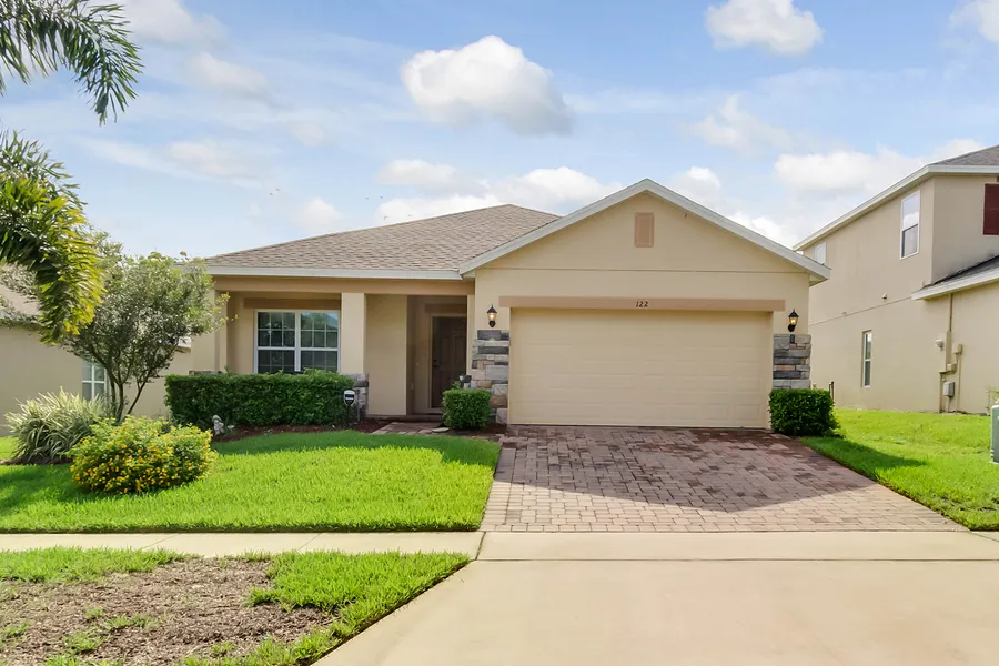 This Wonderful 4 Bedroom, 2 Bath Home is located in the Desirable Gated Community of Marbella at Davenport. Upon entering the home, you will be greeted with a Charming Front Porch. The Open Concept Floor Plan features a Spacious Living Room with Glass Sliding Doors allowing access to the Backyard. The Well Equipped Kitchen features 42" Upper Cabinetry with Crown Molding Trim, Closet Pantry, Stainless Steel Appliance Package and a Breakfast Nook. A Large Center Island adorned with Granite Countertops provides additional seating space. The Master Bedroom Suite feature Wall to Wall Carpeting and a Generously Sized Walk in Closet. The Master Bathroom is appointed with a Comfort Height Vanity, Dual Sinks, Water Closet, Tile Shower with Glass Enclosure and Luxurious Garden Tub embellished with Listello Tile. Other amenities include a Laundry Room with Washer & Dryer, Double Pane Windows, 15 Sh...
