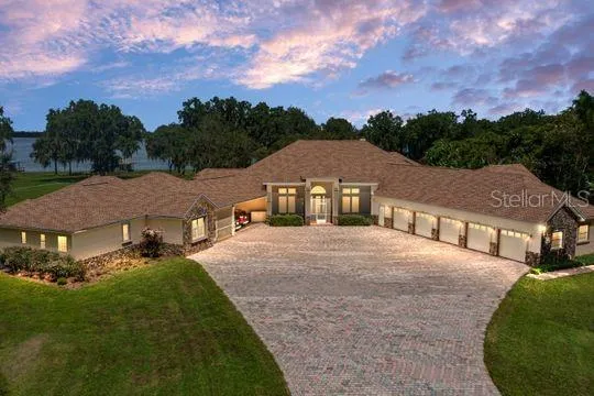 MULTI-GENERATIONAL HOME! Bring your family! Or rent out a living area or two and never have to make a payment out of your pocket for this gorgeous, huge home with 3 living quarters, all with FULL KITCHENS, on 5+/- acres on beautiful Lake Marion near Haines City. Each living area has beautiful views of the lake from several of the rooms. 7 bedrooms, 8 full bathrooms. 3 laundry rooms. Over 10,000 SF of space to enjoy, and views of the lake with gorgeous sunrises. The intricate special details and architectural features are beyond anything you would expect. There is no wasted space in this home. The screened lanai is over 32 feet long and 21 feet wide, has beautiful columns, a full bathroom, and faces the lake. The floor of the lanai is brick laid in herringbone pattern. 5-bay garage with tons of storage and a workshop. There is also a barn shed with a workshop. A new roof was put on in December 2020, as well as solar panels installed. Five air conditioning units, all recently replaced. The living room has tray ceilings with special lighting, and the wood-burning fireplace is beautiful granite and wood. A stunning office/library with coffered ceilings. 14-foot ceilings welcome you at the front door as you enter this grand foyer. You will love the light fixtures, the formal dining room, the elegant staircase that leads upstairs to the large bonus room with its own full bathroom and closets. The main living area has 3 bedrooms, 2 of them have a Jack & Jill bathroom with separate dressing rooms. The Master Bedroom has tray ceilings, an enormous walk-in closet and en suite bathroom that is breathtaking. If you like to work out, you will love the fitness room with plenty of space for all your equipment. There is a guest house and an in-law area. These are full homes approximately 1,600 SF each with 2 bedrooms each, a screened lanai, full kitchens with appliances and lots of cabinets. The woodwork in this home is amazing! The current owners built it as a generational home. It could be a bed & breakfast, air bnb, or other possible options. This is a place to be proud of. There is beautiful landscaping, lots of oak and fruit trees, bromeliads in bloom, with an irrigation system that keeps all the landscaping beautiful and lush. You have a dock with a boat lift and benches to sit on with your coffee in the morning watching the sun come up. Or just fish from your dock. The beautiful electric, stone and iron gate greets you as you pull in before driving the long pavered driveway to the house. There is just so much here, it cannot all be listed. You need to see it. DON'T WAIT. MAKE AN APPOINTMENT TO SEE IT FOR YOURSELF!!