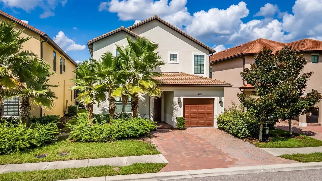 Make this beautiful home your own! Located in a Florida paradise named Solterra Resort community. This highly sought after Alexander Palms floor plan features 5 bedrooms, 5 bathrooms, and over 3000 sq ft of heated living space. Whether you are looking to enjoy a full time residence, a second home, or a vacation rental, this home is ideally located immediately behind Solterra amenities center with resort-style community pool, a lazy river, gym, and on-site restaurant. This well kept home features grand ceilings in the living room and 2 full suites. The first floor has 2 bedrooms, 2 bathrooms while the second floor has 3 bedrooms and 3 bathrooms. Spacious living room overlooks an enclosed patio with screened private south facing heated pool and spa. An inviting fully equipped kitchen with breakfast bar features Granite tops, 42" cabinets with crown molding, decorative back-splash, and stainless steel appliances. Located 11 miles to theme parks and few miles to department stores, shopping and restaurants . A 24 hour guard gated community and valet trash pickup are one of the many bonuses you or your guests will enjoy. With a low monthly HOA fee, make this dream home your own.