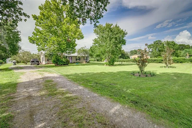 Welcome home. This property features 1.65 acres with all the modern fixtures and updates. As you enter, you are greeted by a quaint foyer that leads into the living room. The hallway leads to the bedrooms and updated main bathroom while the kitchen boasts a modern eat in area, along with a spare utility/wash room that will not disappoint. Furniture is also negotiable so keep that in mind as you are viewing this picture perfect lot. The windows are fixed with immaculate and well crafted plantation shutters and are updated pella hurricane windows. The kitchen features pantry style cabinets that are hugging the newer French door refrigerator. It boasts sparkling dark granite counter tops, modern cabinetry throughout, and a gas stove for cooking. There is also a tankless gas water heater to add to the list of updates featured inside. The outside features oversized lot with additional easement on the side to access for unloading/loading. It also has three separate storage buildings for your convenience along with a solar panel powered/electric auto fence that opens and closes with the touch of a button. The pool also conveys with the property, it just needs a new liner. ***Professional Pics Coming 8/12***