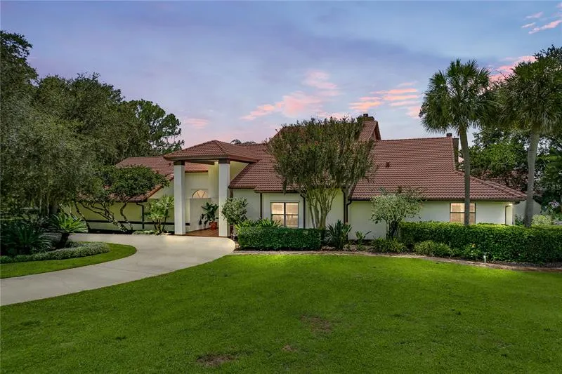 *** Price Improvement*** ENTERTAIN IN STYLE A magnificent 4,938 sq foot luxury lakefront 5 bedroom, 4.5 bath pool home set on a very private 2.48 acres on Lake Hamilton on the Chain of Lakes in Central FL. Welcoming you is a long circular driveway of mature trees and manicured grounds with tasteful landscape lighting. Upon arrival, the oversized tiled front porch has twin columns and a beautiful arched leaded glass window. The entry foyer overlooks an enclosed courtyard with a remote-controlled awning and double French doors leading to the Dining Room or the Great Room. The Great Room with 15-foot ceilings is massive with built in bookshelves and a beautiful stone, floor to ceiling, wood burning fireplace. The double French doors at the far end of the Great Room provide the view to the west and is the best spot to watch the gorgeous sunsets and migratory birds. The second and larger arch...