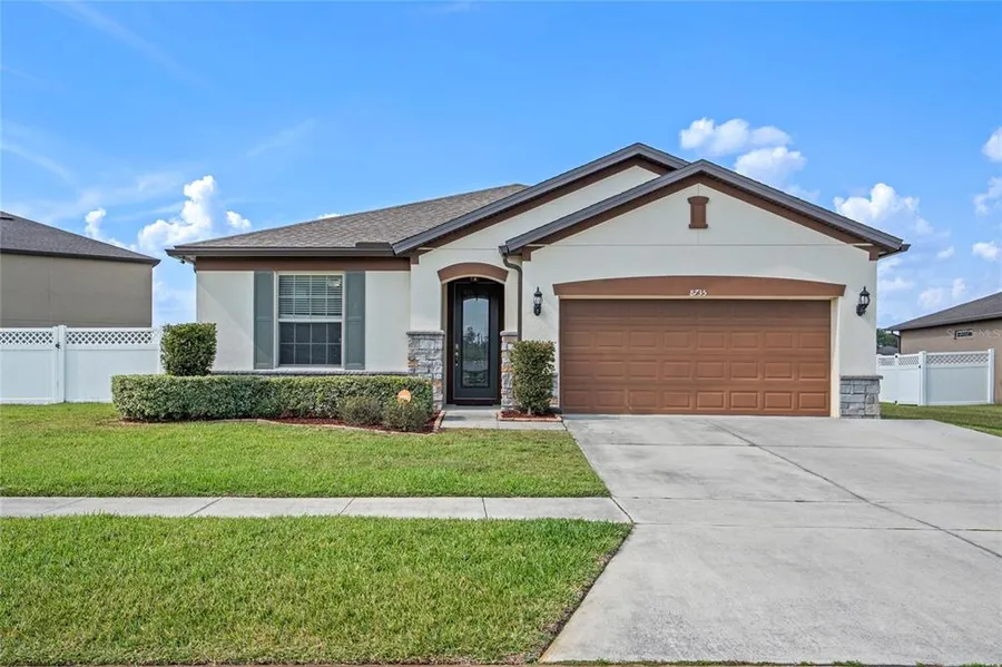 Under contract-accepting backup offers. Price Improvement - bring your best offer! Look no further! Vacant and ready for YOU to Move in! This Home is truly magnificent! The CORNER LOT is expansive and very private with a wraparound vinyl fence. Once you enter from the 8', front, glass, and wrought iron door you have a wide foyer that welcomes you home! Or use the drop off zone for the family's organizational needs when you enter from the epoxy floored, double car garage. The OPEN FLOOR PLAN is great for entertaining your guests inside or outside... its easy to prepare meals with the GRANITE counters in the oversized kitchen and large island which can be used as a breakfast bar, or Enjoy the summer overlooking the WATER VIEW from either your SCREENED IN LANAI or your TIKI BAR which has a GAS GRILL and MINI-FRIDGE for refreshments right by your side. There's space for every member of the family including our 4 legged furry friends with their very own Doggy Door to the DOG RUN area that is separate from the entertaining space with pavers and separate from the huge backyard where you can envision your private swimming pool, garden, and playground some day. This beautiful 3 bedroom / 2 bathroom home has a split plan for your comfort and privacy. The Primary bedroom has a walk in closet and oversized shower with dual sinks. The second bathroom has an upgraded step in whirlpool spa/tub that will delight your guests. This home has a FLEX/DEN/STUDY - use it for whatever you wish! The Family Room has TRAY CEILINGS and CROWN MOULDING throughout. If you are looking for extra storage space, look no further than the attic with a drop down ladder to the standing room area with arched tresses. Did I mention that this is the LARGEST LOT in the neighborhood? Sitting on your very acre! Call Today to schedule your showing!