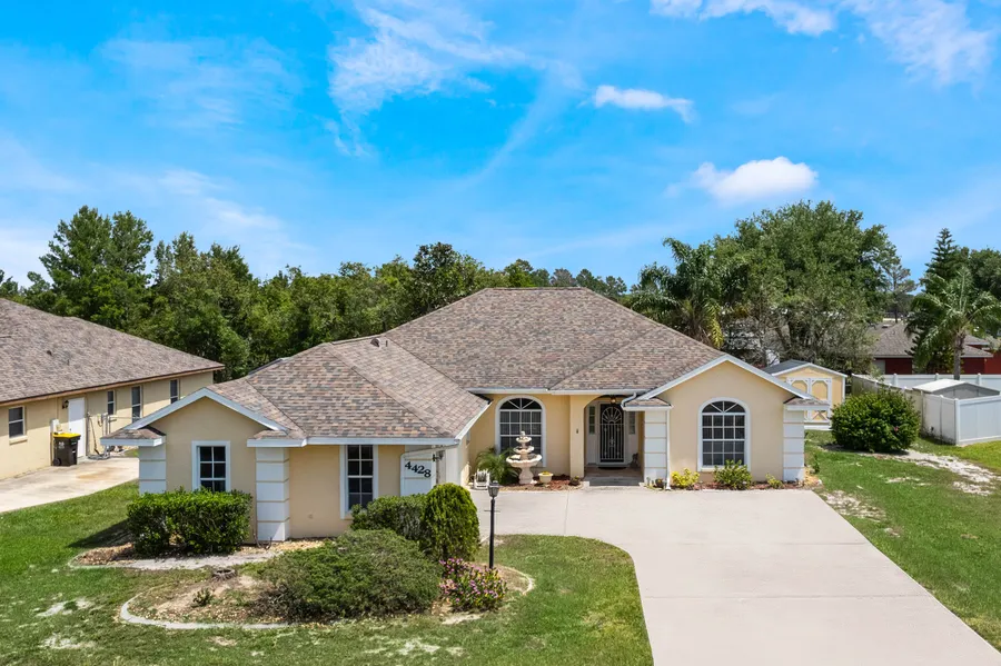 Nestled on a serene cul-de-sac in the peaceful community of Heathwood, this lovely home offers an inviting retreat for comfortable living. The Spacious Living Room serves as the heart of the home, boasting vaulted ceilings, multiple floor outlets, and a skylight that floods the room with natural light. A highlight of the home is the Hidden Pocket Glass Sliding Doors, seamlessly blending indoor and outdoor living. In the Kitchen, Oak Cabinetry with Crown Molding provides ample storage, while convenient pull-out drawers enhance functionality. The Center Island offers additional workspace, complemented by undermount task lighting and a closet pantry. The Breakfast Bar is perfect for casual dining or entertaining, while oversized bay windows in the breakfast nook offer tranquil views of the surroundings. The master bedroom suite is a peaceful haven, featuring a coffered ceiling and glass sliding doors leading to the Florida room. His and Her Walk-in Closets and a Private Ensuite bath with a Walk-in Shower and garden tub provide comfort and convenience. This home also features a bonus flex room, ideal for a hobby room or office. Pocket Doors to Bedroom #2 ensure privacy when needed. Additional amenities include a Laundry Room with Utility Sink and extra Cabinetry, a Central Vacuum System, Irrigation System, De-humidistat, pull-down attic stairs, Shed, fenced yard, retractable garage screen door, oversized driveway, and a side-entry 2-car garage with a garage door opener. For outdoor entertaining, two Florida rooms overlook the private backyard, providing ample space to relax and enjoy the beautiful surroundings. Conveniently located near Bok Academy and Warner University, this home offers both comfort and convenience for everyday living.