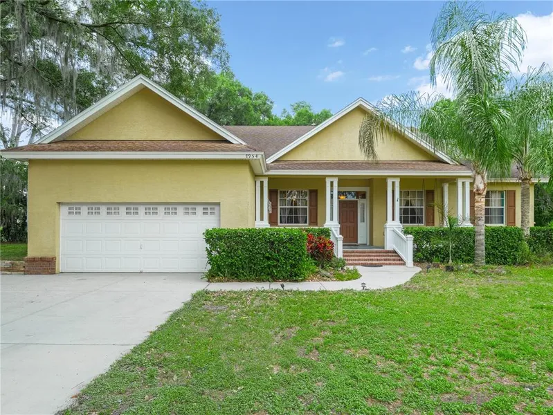 COUNTRY ROADS TAKE ME HOME. Nestled at the end of a tranquil dead-end drive, this Ernie White Home is a haven of peace and privacy. As you approach, the inviting front porch beckons you to relax on the classic porch swing, setting the tone for the warmth that lies within. Elegant Interiors: Double Foyer Entrance: Step into an elegant double foyer that gracefully divides the study and the formal dining room. Study/Den: French doors ensure privacy in the cozy study, an ideal space for quiet contemplation or work. Formal Dining Room: A large window frames the picturesque front yard, providing a scenic backdrop for your meals. Heart of the Home: Fully-Equipped Kitchen: Complete with all modern appliances, the kitchen flows seamlessly into the dinette and great room. Great Room: Spacious and welcoming, it's the perfect setting for gatherings with family and friends. Private Sanctuaries: Master Bedroom: Enjoy direct access to the lanai from the master suite, which boasts an en-suite bathroom complete with a garden tub, double sinks, a walk-in shower, and dual walk-in closets. Split Bedroom Plan: Additional bedrooms share the second bathroom, offering comfort and convenience for everyone. Outdoor Oasis: Screened Lanai: The expansive lanai invites you to extend your entertaining outdoors, surrounded by the beauty of nature. Expansive Backyard: Ready for your personal touch, the backyard offers ample space for a garden or any outdoor activity you envision. This home is more than just a place to live-it's a lifestyle waiting to be embraced. Whether you're hosting a grand event or seeking a quiet moment alone, the Ernie White Home is designed to cater to every aspect of life.