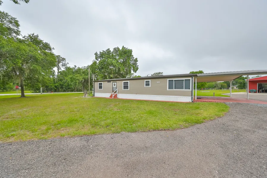This well-appointed, one-story manufactured home features 3 spacious bedrooms with a split design that is perfect for a home office or privacy for overnight guests! The main bedroom has a separate private bath with a soaker tub, a separate shower/toilet room, and a large his and her closet! A full bath is adjacent to bedroom 2 and both 2 and 3 bedrooms have a walk-in closet! Home has custom ceiling fans, and it was completely re-plumbed with a new full size hot water heater in early 2024 and a NEW ROOF installed in May of 2024. New septic lines, tank, and field lines were installed in 2023. New double-pane storm-resistant tinted windows with blinds were also installed in 2023. The well has a water softener and a reverse osmosis unit under the kitchen sink with filters just changed in February 2024 (you don't have to buy R.O. water it is on tap at your kitchen sink ). A nice patio for you...