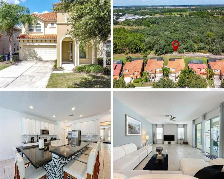 Simply stunning 6 bedroom home on a great lot with NO REAR NEIGHBORS!! This home feels like your own private oasis in a popular resort style community. As you enter the home you are greeted by a bright open room with both a formal sitting area and dining area currently used as a games area. Beyond that there is an large family room with elegant contemporary furnishings, kitchen (with butlers kitchen area) and dining area combination. This large area is flooded with light and benefits from two exits out to the pool and lanai as well as large windows adding to the sense of spaciousness. The bright well equipped kitchen has stone counters, tile backsplash and lots of space at the breakfast bar and table for even the largest group of guests. There is every convenience for guests here, with a half bath and a separate pool half bath located from the pool deck. On the second floor you will find 4 En-suite bedrooms/bathrooms as well as two twin rooms joined by a convenient Jack & Jill bathroom. All of the rooms are elegantly and comfortably furnished and turn key ready for guests. On the second floor there is also a landing/bonus area with laundry closet and study area. The pool and spa are accessed through the kitchen and family room and boast outstanding views of the green space beyond. This home is located on a premium lot and is the perfect place to enjoy fun filled afternoons in the heated pool and evenings relaxing in the spa after a long day exploring all of Central Florida's famous attractions. Watersong is the perfect community to relax and enjoy the various amenities such as a 6,700 sq ft clubhouse, internet room, resort style pool and spa, fully equipped fitness center, playground, volleyball court, picnic area, basketball court and walking/jogging trails. Watersong also features 24-hour CCTV, lawn maintenance including fertilizing and tree trimming.***Close to the major theme parks of Disney, Sea World, Universal Islands of Adventure, Margaritaville & Island H20 Water Park. Also, lots of dining and shopping options, Posner Park Shopping Mall & Multiplex, Champions Gate, and several world-class golf courses! Well booked & managed, this is the fully furnished vacation home/investment or permanent home you've been searching for! Make your appointment to view this home today!