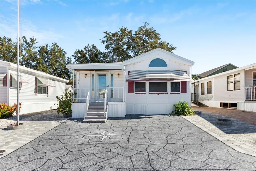 "Snow-Birds welcomed" This charming 1-bedroom, 1-bathroom home is located in a peaceful 55+ community, offering a comfortable and low-maintenance lifestyle. Perfect for seniors seeking tranquility and convenience, the property features a cozy living space with plenty of natural light, a well-equipped kitchen, and a relaxing bedroom with ample storage. The community provides a welcoming environment with access to amenities designed for active adults, such as social spaces, walking paths, and organized activities. Ideal for those looking for a quiet, comfortable retreat with the security of a vibrant, age-restricted neighborhood. This place is basically about as cheap of living as it gets. Our HOA fees are the cheapest in the area. On top of that the house is pretty much self sufficient with all the new updates. Easy living with no surprises. New membrane roof, new hot water heater, new A/C unit, new decks, new driveway and the yard completely redone with pavers in 2021-2022.