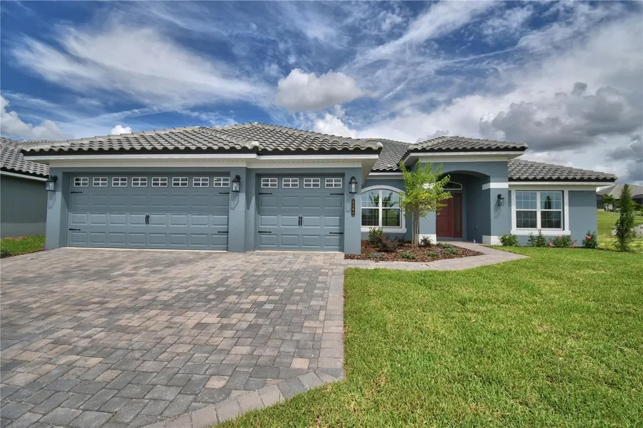 Under Construction. This 2500 Sq ft home has 4 bedrooms and 3 baths, 3 car garage, lots of entertaining space and luxurious details throughout! Upon entering you will enjoy the open concept great room/dining room/kitchen with 10’ ceilings, wood look plank tile in main areas, granite countertops throughout, 5 ¼ inch baseboards, wainscotting in dining room and much more. The owner suite is spacious with Tray Ceiling w/crown molding. Ensuite has double sink vanity with extra storage drawers, linen closet, tile separate shower w/glass door, nice tub, etc. This home has 3 other spacious bedrooms and 3 baths with linen closet, tub-shower combo, separate toilet, duel split vanity sink with storage drawers. The exterior of the home has a tile roof and patio paver driveway, and patio paver covered lanai. This community is gated, has a gorgeous clubhouse with fitness center, pool overlooking the lake, basketball and tennis courts. There is also a community boat ramp.