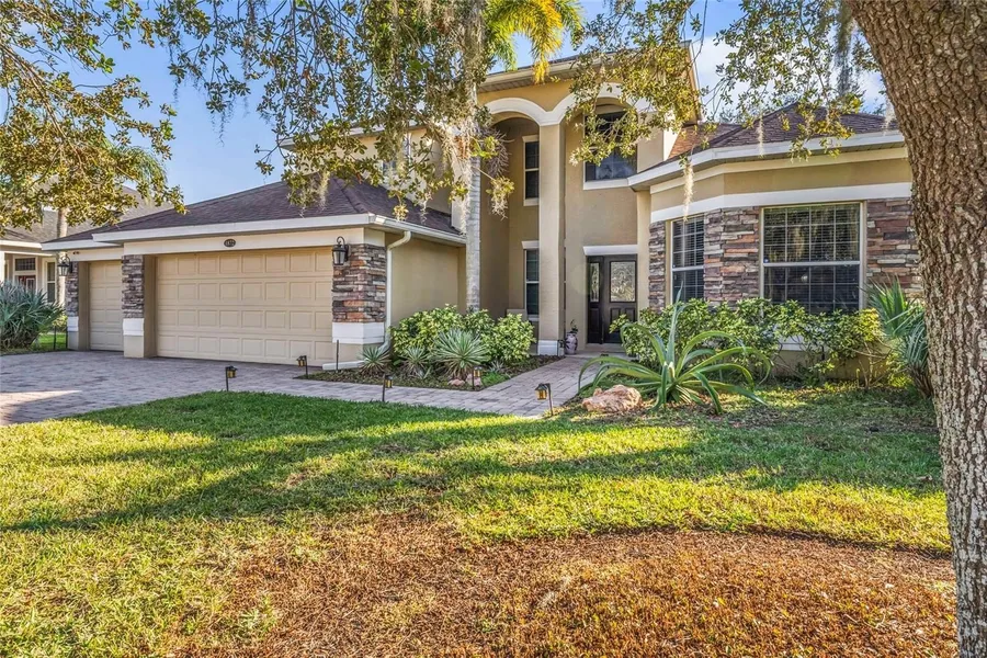 Under contract-accepting backup offers. Prepare to be impressed with this stunning home in the amazing Eloise Cove Community! Discover your dream home in the highly sought-after, gated lakefront community. This spacious 4-bedroom, 3.5-bathroom, 3-car garage offers 3,716 square feet of beautifully designed living space, perfect for both relaxation and entertaining. As you arrive, the mature, well-manicured landscaping and expansive brick paver driveway set the tone for this elegant home. Step inside to be greeted by soaring ceilings, the dining space, beautiful trim work, and an open-concept floor plan. You will LOVE the luxurious downstairs primary bedroom with a tray ceiling and room for a sitting area, and an oversized walk-in closet. The primary bathroom is a spa-like retreat with dual vanities, a walk-in shower, and a soaking tub. Perfect for the chef in the family, the kitchen offers 42-inch glazed maple cabinets, granite countertops, a spacious island, stainless steel appliances (including a double oven), and a breakfast nook. Also located downstairs is an office at the entrance that doubles as an optional fifth bedroom. The great room flows seamlessly to a screened back porch, which opens to the incredible fenced backyard with pavered patio shaded by lovely oak trees, providing the ultimate space to unwind. Upstairs you will find a generous bonus room perfect for a media space or playroom, three large bedrooms, a full bath, and a Jack-and-Jill bathroom. Eloise Cove is a tranquil community offering residents access to a private dock on Lake Eloise, part of the Winter Haven Chain of Lakes. The location provides the perfect blend of serene lakeside living and modern convenience, with shopping, schools, medical facilities, and Legoland just minutes away. This home offers the ultimate Florida lifestyle. Don’t miss the opportunity to own this exceptional home in this impressive community. The seller is offering the fitness equipment inside the home and the outdoor items for sale under separate agreement. A complete list can be provided to anyone who is interested in these items. Ages of roof (7 years), HVAC (4 years), and Hot Water Heater (1 year).