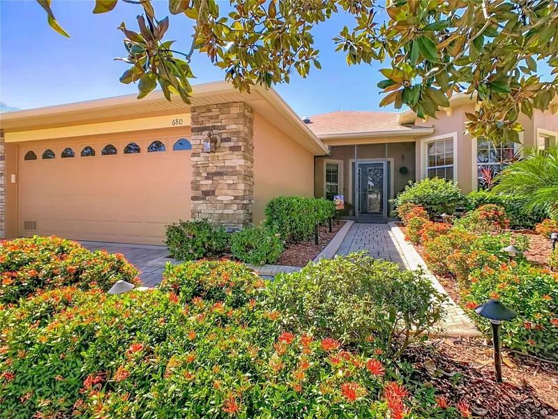 **See the FULL LENGTH VIDEO on Tour Link 1.** Enjoy the Serenity of this well-maintained 3 Bedroom/2 Bath Melody Model home with no carpet, no rear neighbors and Stunning Conservation Views! RECENT UPDATES to the Home include a NEW A/C 2018 & NEW ROOF 2016 with Energy-efficient and cost-saving SOLAR panels (fully paid off at closing!) Enter this home through the LEADED GLASS door into the OPEN CONCEPT Great Room/Dining Room combo, featuring 18" CERAMIC TILE ON THE DIAGONAL throughout the house, a SUN TUNNEL SKYLIGHT, CROWN MOLDING and UPDATED LIGHTING FIXTURES & CEILING FANS. The Kitchen features CAMBRIA QUARTZ COUNTERTOPS, SUBWAY TILE backsplash, NEW FIXTURES, a DOUBLE WIDE UNDERMOUNT STAINLESS SINK, NEWER S/S KITCHEN-AID FRENCH DOOR REFRIGERATOR & DISHWASHER, 42” MAPLE CABINETS WITH PULLOUTS, CLOSET PANTRY W/PULLOUTS, S/S APPLIANCES, all in a bright, open and airy space. The Owner’s Suite features DUAL WALK-IN CLOSETS with ALPHA CLOSET SYSTEMS, and the attached en-suite bath features UPDATES including DUAL SINKS with CAMBRIA QUARTZ COUNTERTOPS, NEW FIXTURES, a WALK-IN SHOWER, a SOAKING TUB, and a separate Water Closet. The SPLIT FLOOR PLAN offers privacy for the 2nd & 3rd Bedrooms/Office with a centrally located 2nd bath, also UPDATED with CAMBRIA QUARTZ COUNTERTOPS & FIXTURES. The large covered screened lanai with PEACEFUL CONSERVATION VIEWS offers a quiet retreat or can serve as a space to entertain. A separate laundry room features a newer washer and dryer, as well as a utility sink. The TWO-CAR GARAGE features an extra refrigerator, and the landscaping has been refreshed and updated. Recently painted in 2024, at 1813 sq feet, this home is a must-see and a perfect home to enjoy your time here in Solivita. ***Solivita is an active adult 55+ community located in Kissimmee, Florida. It is approximately 50 minutes from Disney World & the Orlando International Airport. Solivita has a total of 5,470 homes. Approximately 10,000 - 11,000 people live in Solivita during the winter while approximately 7,500 live in Solivita during the summer. Enjoy your active years in this piece of paradise. Solivita amenities include: - a manicured SOFTBALL diamond & field - 36 holes of CHAMPIONSHIP GOLF that can be played by joining the Stonegate Golf Club or paying as you go - 2 STATE of the Art AMENITY centers with updated exercise equipment, yoga studio & meeting rooms - 3 restaurants - 14 HEATED POOLS - 17 PICKLEBALL courts - 9 TENNIS courts - 4 BOCCE BALL courts - 4 SHUFFLEBOARD courts - 3 HORSESHOE pits - a BILLIARDS room - miles of bike paths - 2 DOG PARKS (Small & Large Dogs) - Corn Hole - Tot Lot PLAYGROUND - COMMUNITY GARDEN - over 250 resident clubs. The HOA: - maintains the LANDSCAPING & IRRIGATION systems in the common areas as well as at individual homesites - maintains the roads throughout the community - PROVIDES SECURITY with gate guards and mobile patrols including the Polk County Sheriff - allows AUTOMATED GATE ACCESS for residents via license plate readers - provides residents with Fiber Optic Internet & TV service.**Poinciana Lakes Plaza is a MAJOR NEW SHOPPING CENTER that opened directly across from the Solivita Main Gate in Summer of 2024. It features Sprouts Grocery, TJ MAXX, Ross, Burlington, Rack Room Shoes, 5 Below, Ulta, Outback, First Watch, 5 Guys, Urgent Care, Dentist, TD Bank, Petco & Hair Cuttery PLUS MORE TO COME.**