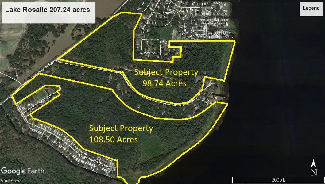 207 +/- Acres on beautiful Lake Rosalie in Lake Wales Florida. Boasting beautiful wooded property with an abundance of game and approximately 3,575' of lake frontage on a fantastic fishing lake that is connected to the Kissimmee chain of lakes. The property also has an incredible set of barns consisting of a large pole barn, beautiful workshop barn with central a/c and bathroom and a dog pen barn fit for a king! This property is a must see.