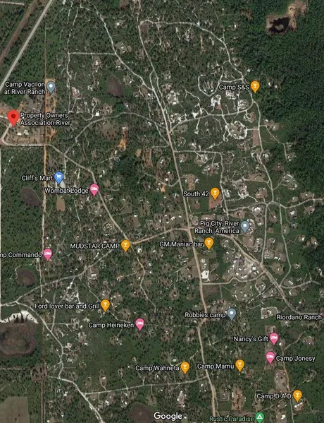 In the 1960s, a now defunct land developer divided the vast area of sugar sand, trees, swampland, and more into thousands of parcels for a future community which never developed. All these land owners formed the River Ranch Property Owners Association (RRPOA). With annual dues of $155, land owners have access to this private area consisting of a staffed front gate, monthly meetings, events, hunting area, thousands of miles of trails, parking/loading/unloading area, temporary camp section, and more.