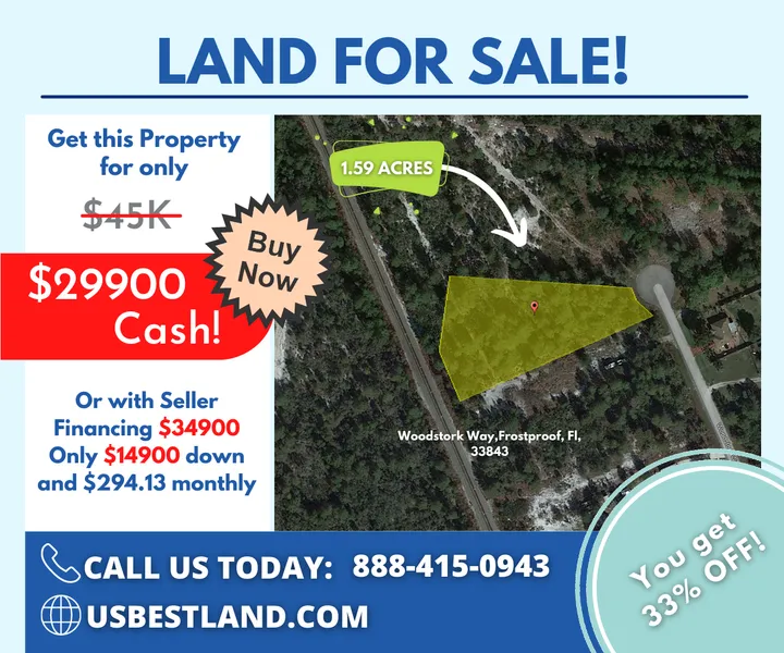 Get Ready to build Your new home in this great 1.59 acre lot size property which is located in Frostproof Fl. With this rural area you get to experience a peaceful and quiet environment but at the same time is convenient for shopping and is closeby to big universities. This lot is zoned as agricultural residential rural that allows single family homes and a manufactured home to be built on the property and plus with No HOA Fees. Utilities available in the area! For a limited time, get a 33% discount! Don't miss out on this fantastic offer! For additional information, call or text us today! Please give reference number 18682.