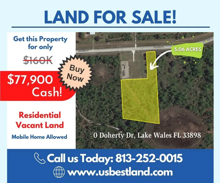 Research Parcel InformationFrom Lake Wales, Head west on E Central Ave toward 5th St. Turn left at the 1st cross street onto 5th St. Turn left onto E Polk Ave. Turn right onto 4th St. Continue onto Palm Ave. Slight right onto State Rd 60 E/Hesperides Rd (Pass by O'Reilly Auto Parts (on the right in 1 mi)). Turn right onto Doherty Dr.