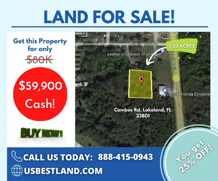 Looking for property to buy? Get a chance to own this 1.03 Beautiful lot now located in Lakeland, Fl. With this spectacular commercial Lot you get to experience being minutes away from several Shopping, Entertainment centers and even delicious restaurants that are a must try. For a limited time, get a 25 % discount! Don't miss out on this fantastic offer! For additional information, call or text us today! Please give reference number 16832.