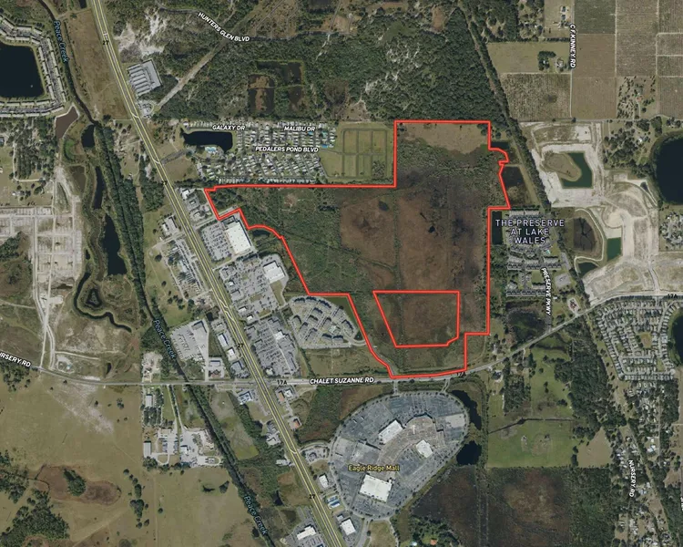 This 200-acre mixed-use development opportunity is located along the US Highway 27 growth corridor in Lake Wales, Florida and carries Future Land Use designations of Medium Density Residential and Regional Activity Center (RAC). The site features 1,401.30 linear feet of frontage on Chalet Suzanne Rd, creating the potential for an approximately 15-acre commercial frontage band suitable for neighborhood-serving retail, pads, and service-oriented users, while the balance of the property provides depth for a master-planned residential program including multifamily and single-family components. The property is positioned in a proven daily-needs retail node anchored by Publix, with nearby national and regional users including Aldi, Chilis, Freddys, Sherwin-Williams, Planet Fitness, Lowes, and ABC Fine Wine & Spirits, and continued corridor momentum supported by Hampton Inn, a completed Chipotl...