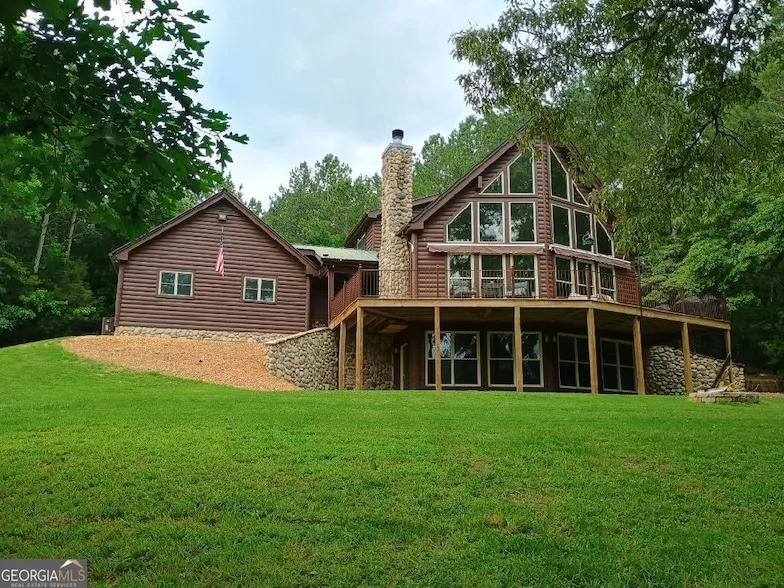 One-of -a kind private retreat is on Cedartown's northside in rural Lake Creek just minutes from Rome. This custom built home is meticulously crafted with beautiful woodwork, ironwork and full front window views from each level. Exterior has been freshly painted. 5.6 acre tract both wooded and cleared is outdoorsman's dream with trailing through the woods or enjoying target practice. Attached oversized garage has heat and air. Home's interior includes 3 bedrooms, 2 baths, great room which showcases lovely fireplace, dining area and fully efficient kitchen. Private owner's suite has sitting area and large tiled bath with double vanity, spa tub and shower. The lower level is ready to be finished. It has a stubbed bath with tub. So many amenities here! Don't miss seeing this stunning property!