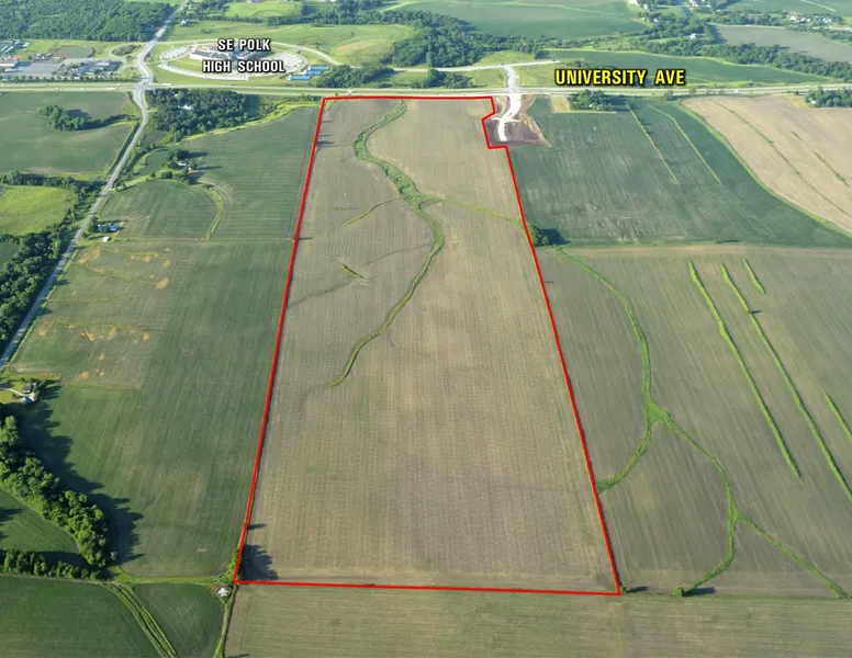 Offering 157 acres m/l of productive development land along University Ave in Pleasant Hill and Altoona, Iowa. According to Future Land Use maps from Pleasant Hill and Altoona, the site is slated for various uses including commercial, medium density residential and low density residential. Site offers a new signalized access in the southwest corner and boasts more than 15,300 vehicles per day along University Ave (Iowa DOT 2012). All utilities to site or readily available. Property has a 12 inch water main located along the north side of University Ave and a 10 inch sewer main is located west of the property approximately mile. Electric and natural gas are available to the property through MidAmerican Energy. CenturyLink fiber is located along University Ave.