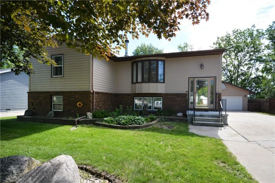 Home awaits in this stunning, highly sought after Bondurant community split foyer This property offers 6 spacious bedrooms and 2 full baths sitting on .67 acres. The large kitchen, which includes new stainless steel appliances, seamlessly flows into a large open concept living and dining area. The lower level offers two bonus areas, laundry and walk out access to the back yard. New carpet and paint throughout. The oversized finished 2 car garage is fully insulated, with furnace, for year round accessibility for all your project/shop needs. A single detached garage is also included for additional storage or awaits your personal finishes for your own chic she-shed. The large covered rear porch overlooks the fenced in backyard which opens to a sizeable rear lot; a dream come true for privacy seekers and gardeners and will offer countless hours of fun for children and all their outdoor activities. Walking distance to downtown and nearby schools. Don?t miss out on this amazing property.