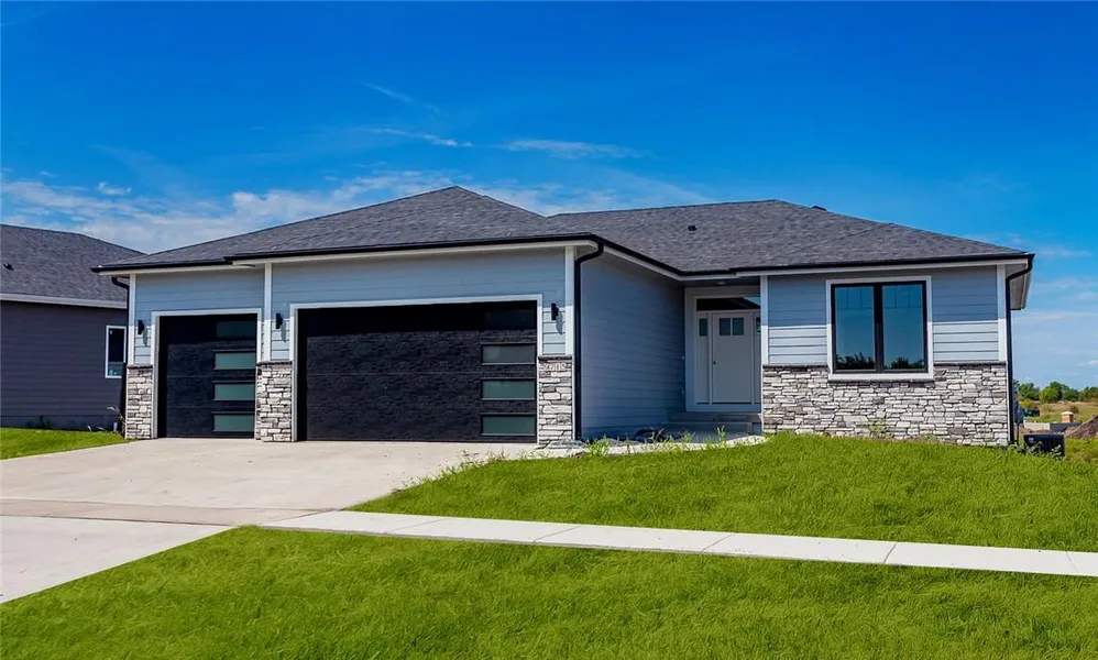Stunning new construction (Eden Custom Homes) 5 BR walkout with approx 2600 sq ft finished living space, backing up to a pond. Beautiful lot! 3 BR on main and 2 on lower level. 3 full bath, 2 up and 1 down. Spacious eat in kitchen, featuring quart counter tops, under cabinet lighting, island with sink, soft close drawers, gas stove with hood, slate GE appliance package, beautiful white cabinetry and walk in pantry. Centered fireplace on main with floating shelves on each side. Large Gerkin window package. Luxury vinyl flooring throughout the kitchen and living area on main. Locker set up off of garage with quartz top. Roomy master BR, featuring tray ceiling, walk in closet, large double vanity bath with linen cabinet. Black finishes (drawer pulls, towel racks, light fixtures, etc). Nice open living space in basement with a wet bar (slate stained). Covered composite deck with black aluminum rail a Extremely energy efficient, foam insulation box sills and insulated garage and large concrete patio underneath.