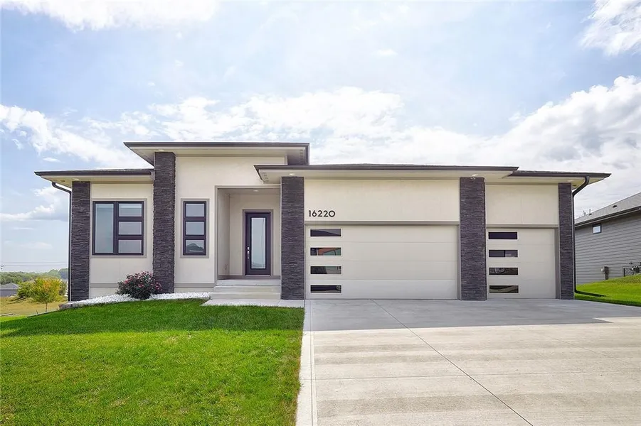 Prepare to fall in love with this stunning contemporary ranch home! You'll be greeted with an open floor plan, 10? ceilings and tons of natural light. Better than new from the quality of craftsmanship to the upgrades throughout w/ 2x6 construction. The modern kitchen has white cabinets w/ tile backsplash, quartz countertops, a gas range, Kitchenaid SS appliances and a walk-in pantry accompanied by a dining area. 3-panel sliding door leads to the covered deck with ? ac large lot and buffer of trees for extra privacy + a peaceful setting! Living area features a gas fireplace with stone surround and large windows. The main level hosts a spacious primary suite with a tray ceiling and walk-in closet with custom shelving. The spa bath w/ tiled shower and dual vanity is light filled and serene. 2 additional bedrooms and a full bath are located on the main floor, perfect for office or flex space if needed. Mudroom with laundry and sink are located off the garage yet can remain hidden behind the sliding door. The daylight lower level is equally spacious, bright and is ready to be completed for your specific needs! Impressive garage with high ceilings for added storage and 220 EV charger. Added highlights include a 5 stage water filtration system and 11 zone yard irrigation w/ wi-fi. With connectivity to Walnut Creek bike trails, Waterford park and walking distance to the new elementary school (Waukee schools), this property is ideal!