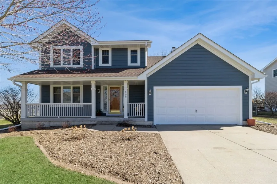 Live just steps away (or west) from South Prairie Elementary and Sports Complex. Easy access to the many existing, new and upcoming amenities Grimes and surrounding communities have to offer. Recent year updates include: newer roof, hardy plank siding, HVAC (heating & cooling), windows, hardwood floors, exterior paint. In 2024, the home (and garage) have had all new interior paint as well as LVP added in the entry, kitchen and bathrooms. Refer to Seller's Disclosure with years. This two-story home enters to a dining room on the left, steps immediately to upper level, or partial bath or powder room to the right. Or, one can walk straight through the short hall that opens to the kitchen on the left or living room on the right. Off of the kitchen is an eat in area with a slider to the back side of the home with view of the sports complex and walking path. Family room features the hardwood floors and a wood burning fireplace. Laundry room is next to the garage entry on the main level. Second floor has all three bedrooms with the primary bedroom having a walk in closet and full bathroom, and the other two bedrooms with close access to full hall bath. Unfinished lower level has an egress window and ready to make it your own as well as plenty of storage space. Fenced yard with a small utility shed. Located near trails and schools.