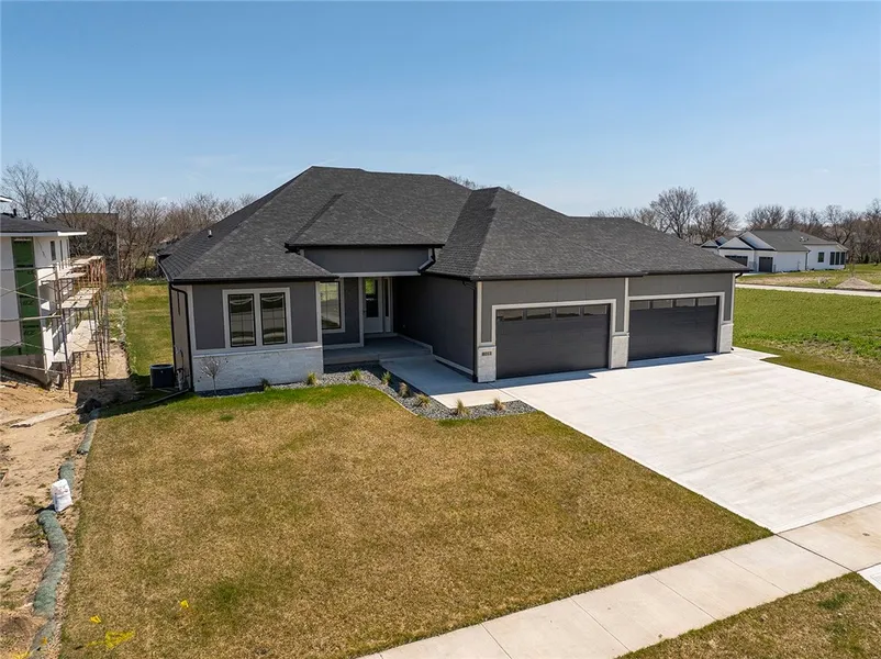Looking for a yard that everyone wants to have? Let's make this new build ranch your home and have the yard of your dreams. There is also plenty of room for a pool. With a 4 car garage, this home will hold all of your toys such as a boat, convertible, and ATVs along with your every day vehicles. This neighborhood is situated close to everything, yet on a quiet cul-de-sac. When you step into this home you will notice all of the attention to detail with the large windows, arched built-ins, as well as the lovely finishes in the kitchen. If you need space to entertain, this home has a large area for a dining table as well as a bar to gather around in the kitchen. The space in the kitchen is utilized well with a walk in pantry and top of the line double door freezer/frig. Let the entertainment space continue out onto the large covered deck and walkout basement. The basement has its own fireplace and bar to keep the fun going. With 5 bedrooms there are so many options for guests and an office. At the end of every day, retreat into the spa-like primary bathroom and drift away to sleep in the large primary sweet overlooking your private backyard. Come and make this high-end luxury home yours today.
