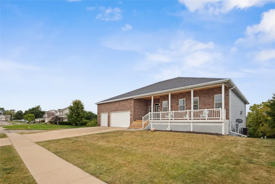 Unique flair and function in this custom-built walk-out ranch that was once the builder's own home. Soaring 10' ft ceilings, arches, built-ins, abundance of natural light & an impressive 2,556 SqFt on the main level! Open kitchen is perfect for family gatherings. Maple cabinets, large pantry, eat at counter or dinette overlooking family room. Oversized mudroom & laundry area for added convenience. You'll fall in love with the sunroom that opens to the 2nd deck. The primary suite boasts dual sinks, spectacular walk-in closet, tub & massive shower with newer beautiful tile. Retreat to your own deck off your bedroom to enjoy a little relaxation. The walkout lower level with daylight windows has endless possibilities for extra living space with 1806 SqFt still unfinished, but the 10 ft ceilings, full bathroom, family room, office space might be all you need. There is no limit to the options on what the additional finish could be, the builder had previously used it for a batting cage and bball court. Let's not forget the 768 SqFt, 3 car attached garage w/built-in overhead storage. Enjoy the outdoors on your covered porch or explore this established neighborhood with the Pointe Vista Park & walking trails just across the street. All this sitting on a sprawling 1/2-acre lot and coveted Johnston schools.