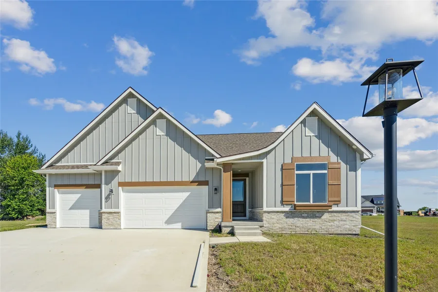 Berkey Home Builders' customized Sloan XL Ranch is a stunning and functional home on a spacious 1/3-acre lot in a quiet cul-de-sac. This prime location offers quick access to the Petocka recreational complex, Bondurant schools, Hwy 65, and nearby bike paths-perfect for a convenient, vibrant lifestyle. Located in the prestigious Petocka Run executive development, this custom ranch spans over 3,000 SqFt of finished space, featuring 5 spacious bedrooms and 3 modern bathrooms. The open-concept living area flows seamlessly, with a cozy fireplace and large windows for abundant natural light. A primary suite offers a private retreat with a spa-like bathroom and a walk-in closet. The chef-inspired kitchen stands out with sleek stainless steel appliances, a spacious pantry, a pot filler, and a stylish buffet area for extra storage and entertaining. The finished lower level is perfect for guests, complete with a wet bar. A versatile flex room adds extra space for a home office or gym. The 4-stall tandem garage includes a rear door for easy access to lawn equipment or hobbies. Outside, a covered patio provides a relaxing outdoor retreat. With thoughtful design and high-end details, this home blends comfort, style, and functionality. *Photos represent the current stage of construction, offering a preview of this exceptional home's progress.