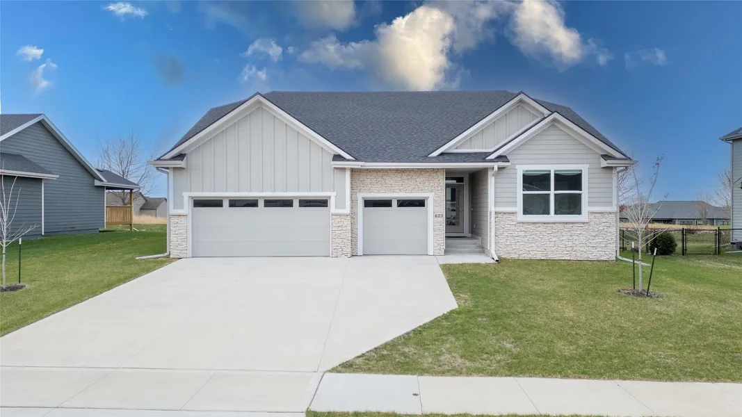 Welcome to 623 NE 55th St in Ankeny! This charming 3-bedroom, 2-bath ranch home offers 1,767 sq ft of thoughtfully designed living space on a spacious 0.30-acre lot. Built in 2020 and located in a fantastic newer Ankeny neighborhood, this home features a cozy gas fireplace in the living room-perfect for relaxing evenings. The open floor plan connects the living area to a stylish kitchen with all appliances included-refrigerator, microwave, washer/dryer-and a mounted TV in the living room for added convenience. Enjoy the benefits of an energy-efficient gas forced-air heating with central air. The large, attached 3-car garage provides plenty of storage, and the home's quiet, yet convenient location offers quick access to schools, parks, and shopping. This move-in ready gem combines modern comfort with great value in one of Ankeny's most sought-after neighborhoods. Don't miss your chance to...