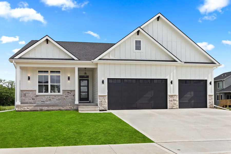 Stunning new construction daylight ranch by Eden Custom Homes in the highly desirable Waterford Landing development. Home backs up to a wooded conservation area, offering lots of privacy. Open style floor plan, fantastic natural lighting and approx 3200 sq ft of fin living space. 2 BR up, 2 BR on lower level and 3 baths. Spacious eat in kitchen featuring a large walk in pantry (with quartz countertops), large island with sink, under cabinet lighting, soft close drawers, gas stove and black slate GE appliance package. Oversized Gerkin window package. Spacious master bedroom showcases a tray ceiling, large walk in closet, double vanity bath and tiled shower. Basement offers a great entertaining space, including a sit up wet bar. Covered composite deck with stairs leading down to patio. Extremely energy efficient! Radon prep included. Dual zoned heating/cooling system. Waukee school district. High quality finishes complete this beautiful home!