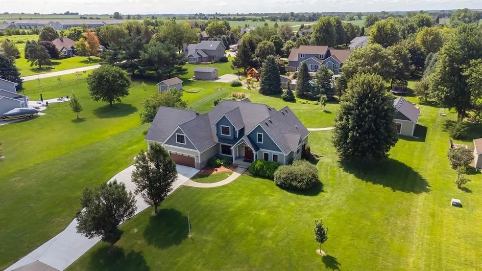 Looking for space, style, and a great location? This beautifully updated 1.5-story home sits on just over an acre in a quiet, tucked-away Ankeny neighborhood with quick access to I-35 making a commute to Des Moines or Ames a breeze. The large, open yard offers endless possibilities: plenty of room to add a pool, play structures, or even a garden oasis. The fully insulated outbuilding, complete with two overhead doors, makes a perfect workshop, gym, extra garage or could easily become the ultimate pool house retreat. Inside, you'll find nearly 3,000 square feet of finished living space with 5 bedrooms, multiple living areas, and thoughtful updates throughout. The main level features a vaulted great room with tons of natural light, a showstopper chef s kitchen with a massive 12-foot island, and a flexible layout with additional spaces for dining, office, or play. The private primary suite includes a large walk-in closet and spa-like bath. Upstairs are three more spacious bedrooms and a full bath, while the finished lower level offers even more room to spread out with a large family room, fifth bedroom, full bath, and bonus flex/bar area. Enjoy peaceful views from the oversized composite deck or stamped concrete patio. Updates include roof, siding, windows, HVAC, driveway, and more! Bonus: Sellers are offering an allowance toward bathroom updates bring your ideas and make it your own! This home offers room to grow, relax, and create your ideal indoor-outdoor lifestyle.